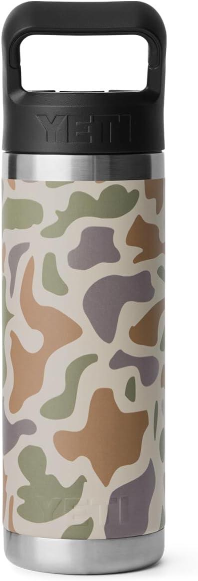 • YETI Rambler 18 oz Bottle, Vacuum Insulated, Stainless Steel with Color Matching Straw Cap, Venom(Wetlands Camo)
