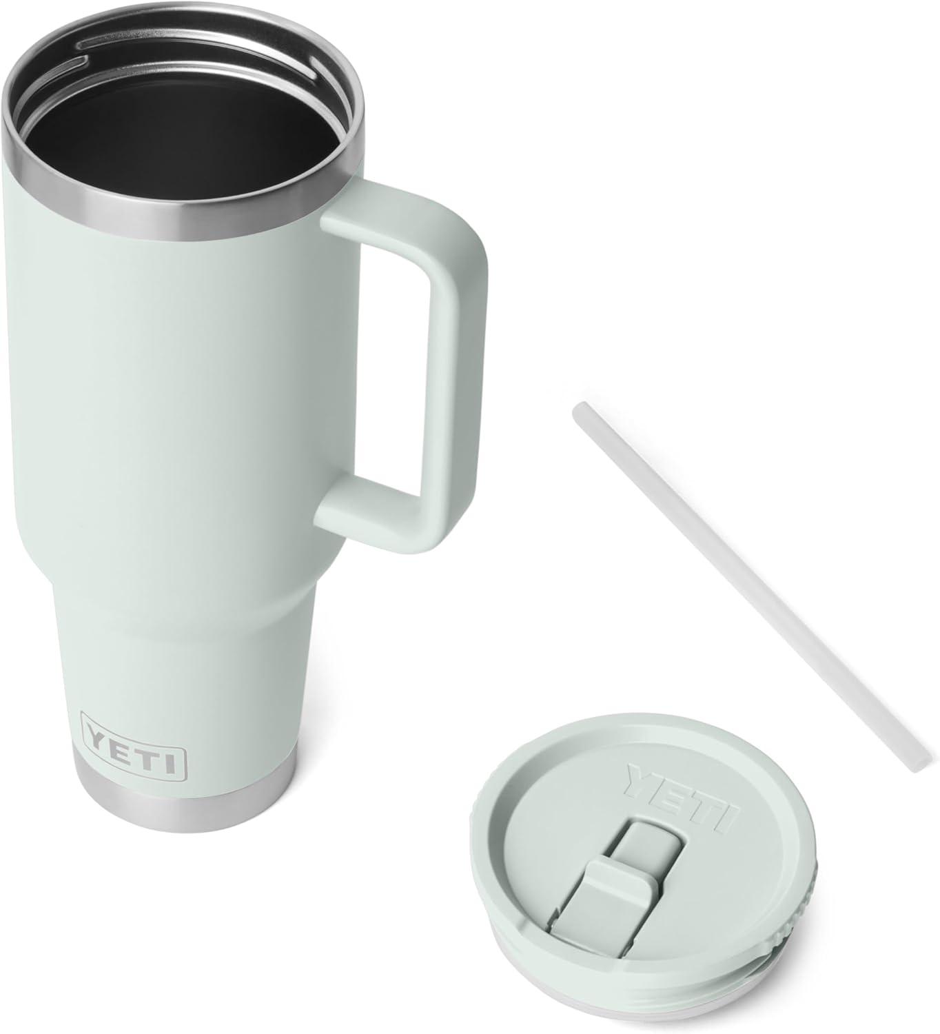 YETI Rambler 40 oz Travel Mug with Flip Straw Lid – Stainless Steel, Vacuum Insulated, Leakproof, Cup Holder Friendly(White)