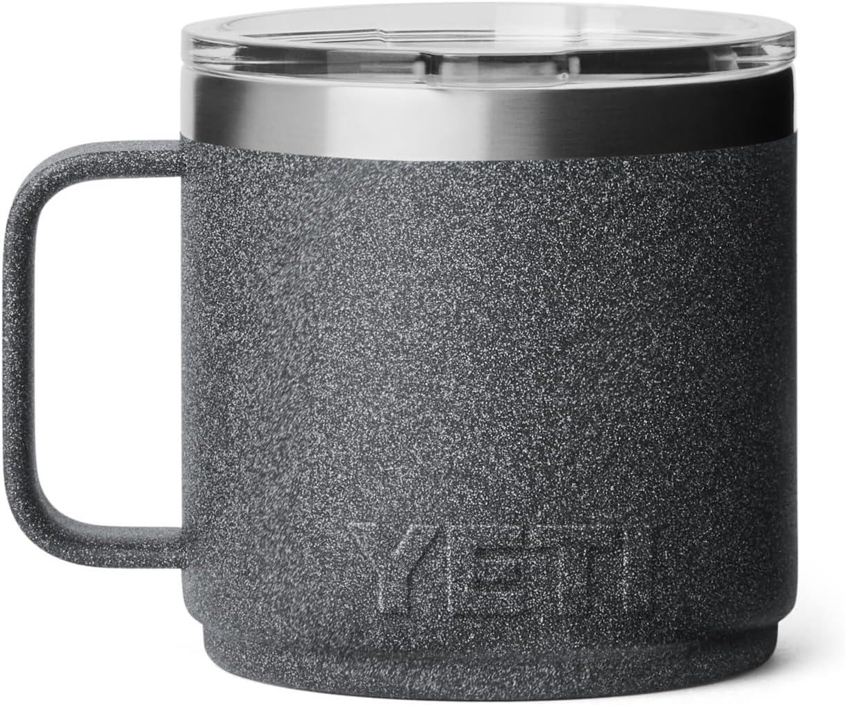 YETI Rambler 14 oz Ceramic Lined Stackable Mug, Vacuum Insulated, Stainless Steel with MagSlider Lid, Ridgeline(Black Stone-Textured)