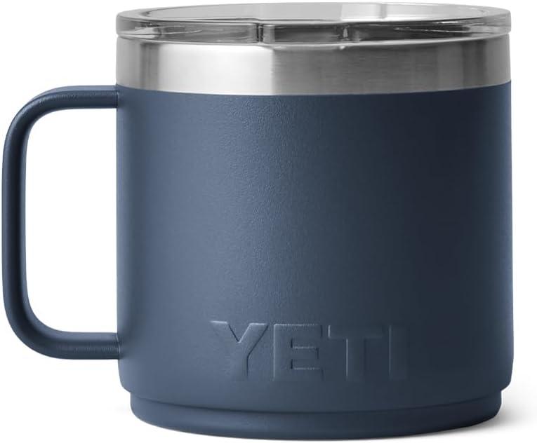 YETI Rambler 14 oz Ceramic Lined Stackable Mug, Vacuum Insulated, Stainless Steel with MagSlider Lid, Seafoam(Navy)