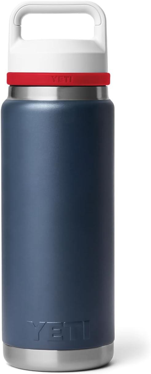 YETI Rambler 26 oz Bottle, Vacuum Insulated, Leakproof, Stainless Steel with Chug Cap(Navy/Rescue Red/White)
