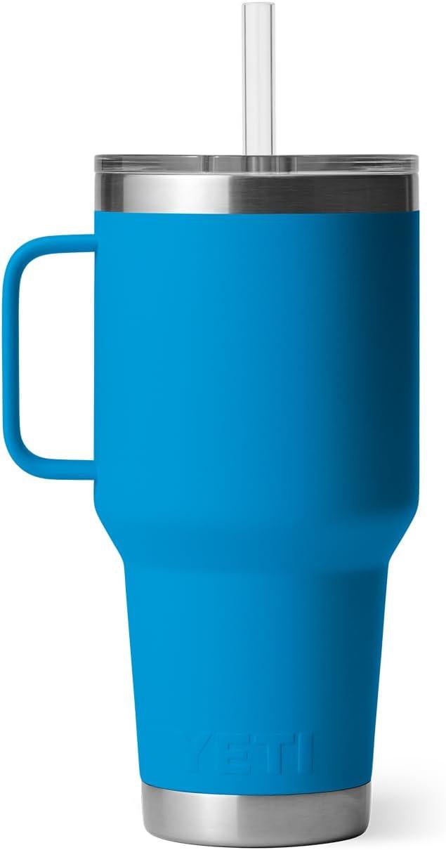 YETI Rambler 42 oz Tumbler with Handle and Straw Lid, Travel Mug Water Tumbler, Vacuum Insulated Cup with Handle, Stainless Steel, Cherry Blossom – Textured(Big Wave Blue)