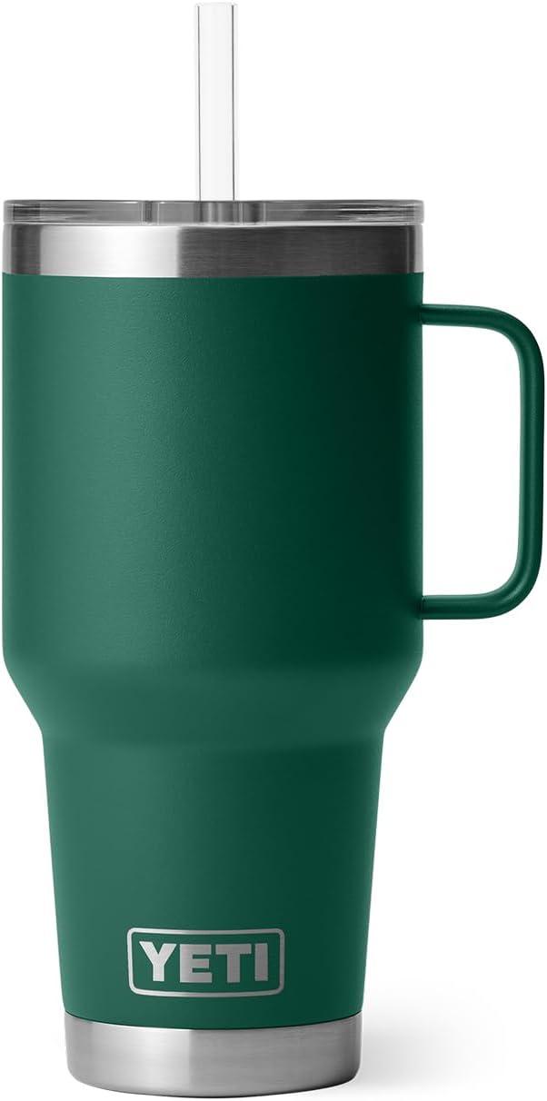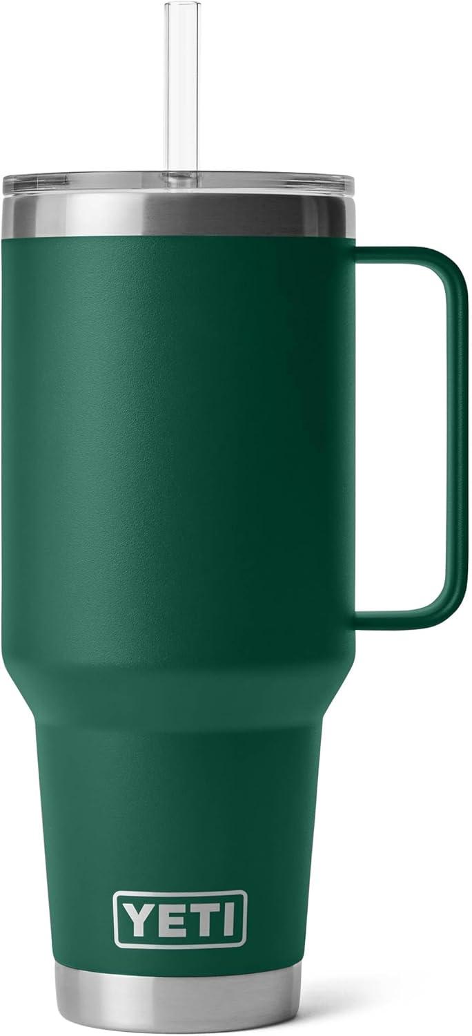 YETI Rambler 42 oz Tumbler with Handle and Straw Lid, Travel Mug Water Tumbler, Vacuum Insulated Cup with Handle, Stainless Steel, Cherry Blossom – Textured(Black Forest Green)