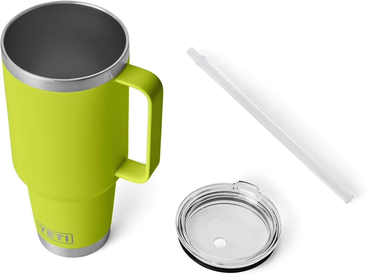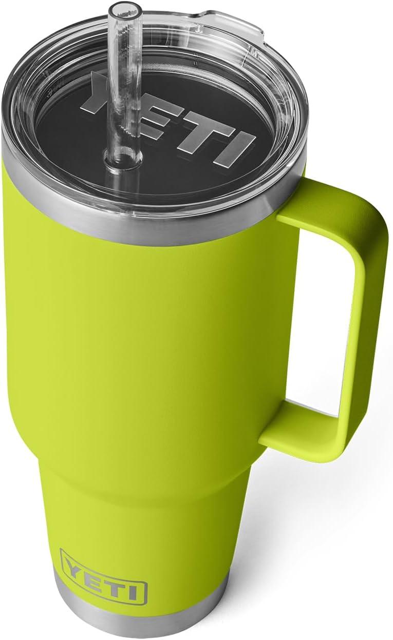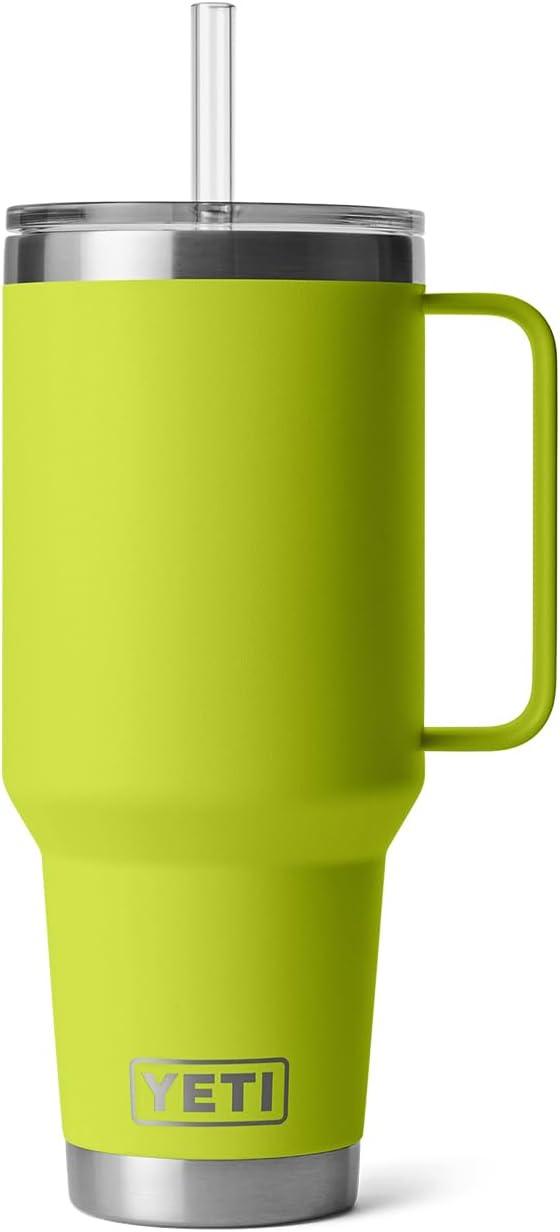 YETI Rambler 42 oz Tumbler with Handle and Straw Lid, Travel Mug Water Tumbler, Vacuum Insulated Cup with Handle, Stainless Steel, Cherry Blossom – Textured(Chartreuse)