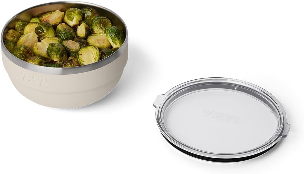YETI Rambler Bowls, Vacuum Insulated, Stackable and Nestable Stainless Steel Bowl with Lid, 2 Quart, Black Forest Green(Cape Taupe)